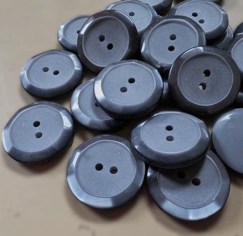 23mm Button | Textured Centre & Wavy Gloss Rim | 2 Hole | Mid Grey