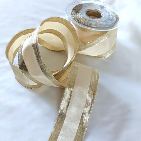 Berisfords Polyester & Metallic Ribbon | 40mm | Wire Edge | Cream-Gold