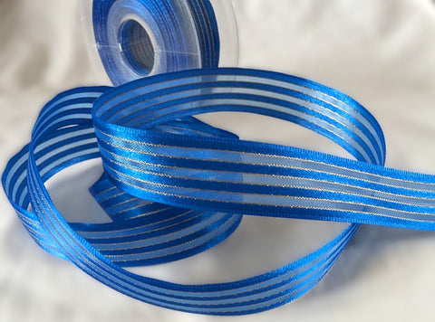 Berisfords Ribbon | 25mm Satin-Sheer-Metal Stripes | Royal Blue & Gold